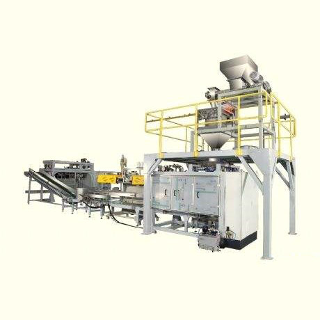 全自動(dòng)(粉料)給袋包裝系統(tǒng)主要針對(duì)化工、食品等行業(yè)而研制的新型包裝機(jī)組。該機(jī)組具有自動(dòng)供袋、上袋、稱量、填充、封口等功能。可包裝物料如顏料、面粉等粉狀、超細(xì)粉料。